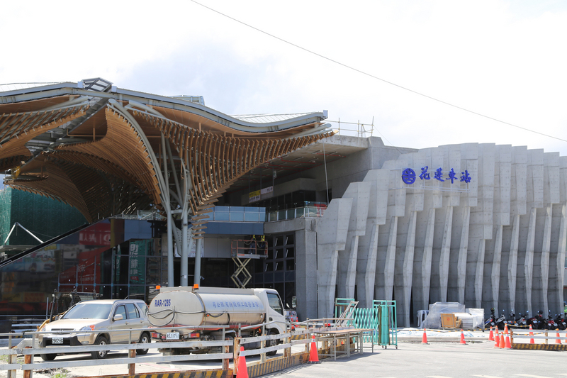 東部大眾運輸的主要交通樞紐花蓮火車站新建工程第一期完工,樹枝意象造型的鋼柱,木板點綴如張傘的頂棚,穿透視覺看見後方中央山脈,將成為花蓮新地標,讓花蓮人充滿期待。