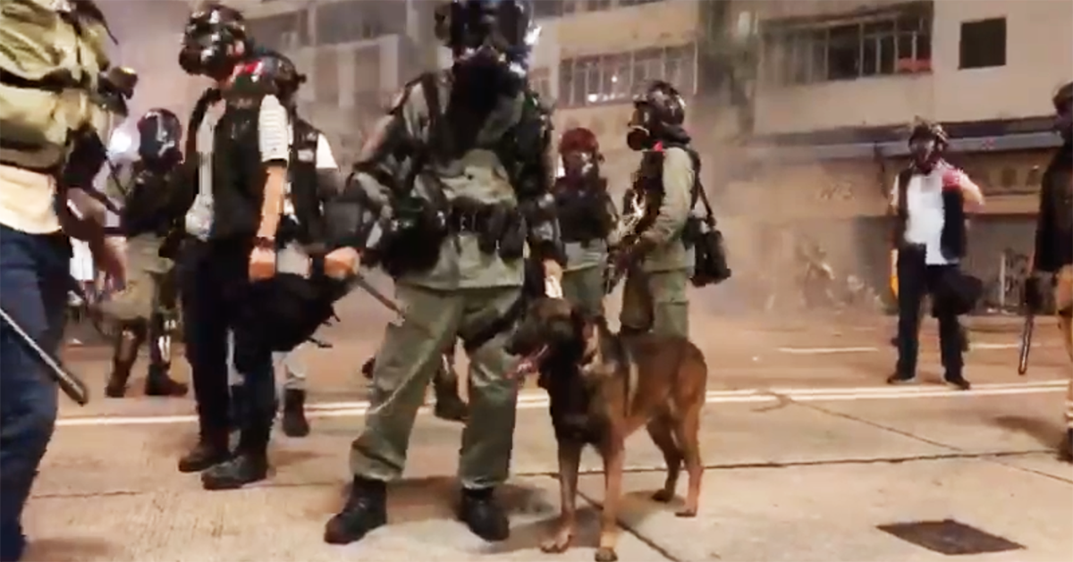 另外,香港警方行動中多次出動警犬執行任務,但警犬卻在沒有防毒裝備下,於催淚煙的環境中執勤。民主派立法會議員毛孟靜、鄺俊宇、譚文豪連同動物保護團體代表,23日一同到警察總部投訴課,投訴警察虐待警犬。