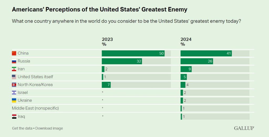 分享 美國人對台灣好感度 77%、對中國反感度 77%。 蓋洛普民調。美國人對台灣好感度 77%,僅低於加、日、英、德、法。但美國人對台反感度才 13%,僅次於日本。 美國人對中國反感度 77%,好感度僅 20%。 41% 美國人認為中國是頭號敵人,遠高於俄羅斯的 26%、伊朗 9%。 圖片來源:取自 曾韋禎 臉書 圖片來源:取自 曾韋禎 臉書 原文出自曾韋禎臉書,芋傳媒經授權轉載。 台灣好感度美國人 分享 FacebookGoogle+電子信箱LINELinkedinTelegram