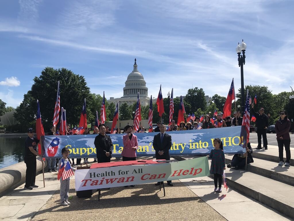 旅美台僑 11 日在華府國會山莊前舉辦支持台灣出席世界衛生大會活動。與會者強調台灣對全球公衛體系重要性,呼籲世衛組織勿政治化,應回歸專業,實踐「人人享有健康」宗旨。