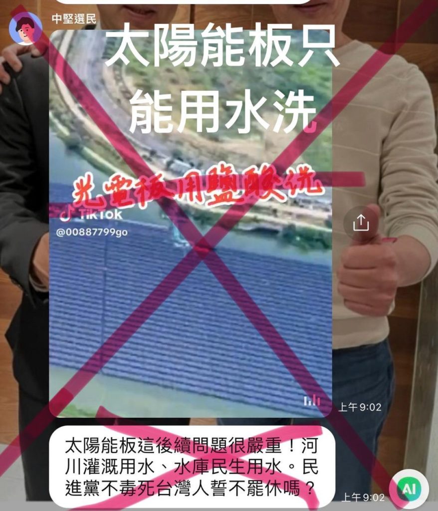分享 原來是抖音影片在長輩 line 群一直傳,說「太陽能板要用鹽酸洗」,這絕對是錯的! 太陽能板只能用水洗!洗滌太陽能板也不會傷害環境! 不然安裝太陽能板跟清洗板子的業者早就被鹽酸灼傷了!誰要做這麼危險的工作? 現在安裝太陽能板的業者很多,跟工班求證一下都知道不可能是鹽酸洗! 圖片來源: 取自 農藝女孩看世界 臉書 原文出自農藝女孩看世界臉書,芋傳媒經授權轉載。 太陽能板鹽酸 分享 FacebookGoogle+電子信箱LINELinkedinTelegram