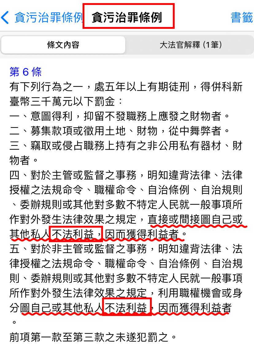 分享 為了避免陳智菡跟小草弄錯,我把法條整理給他們。 1.圖利罪也是貪污治罪條例的罪,不是說沒收錢就不是貪污喔! 2.圖利罪要件是圖「不法利益」,如果是合法利益,為民造福,當然可以。 3.政府重大建設是圖民眾的利益,合法利益,就不會成立犯罪。 #小草的法治教育不能等 圖片來源:林智群律師(klaw)臉書 原文出自林智群律師(klaw),芋傳媒經授權轉載。 不法利益合法利益圖利罪貪污治罪條例 分享 FacebookGoogle+電子信箱LINELinkedinTelegram