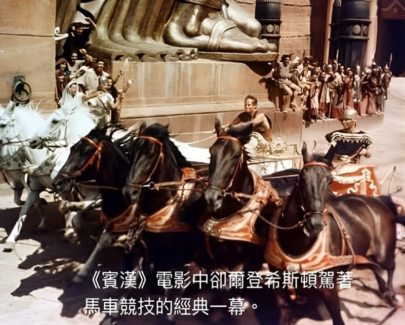 他在1959年主演的《賓漢》(Ben-Hur)是有史以來最偉大的電影之一,首創了11項奧斯卡的最高獲獎紀錄,卻爾登希斯頓也榮獲了最佳男主角獎。片中卻爾登希斯頓駕馭著四匹馬的馬車競技的經典戲(見下圖),是他親自上陣,不找替身。為了練習那一幕競技,他的手肘脫臼了七次。