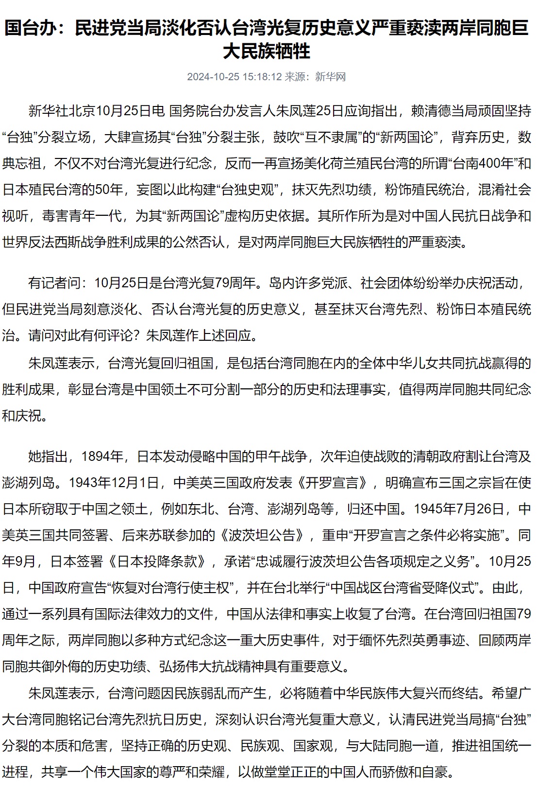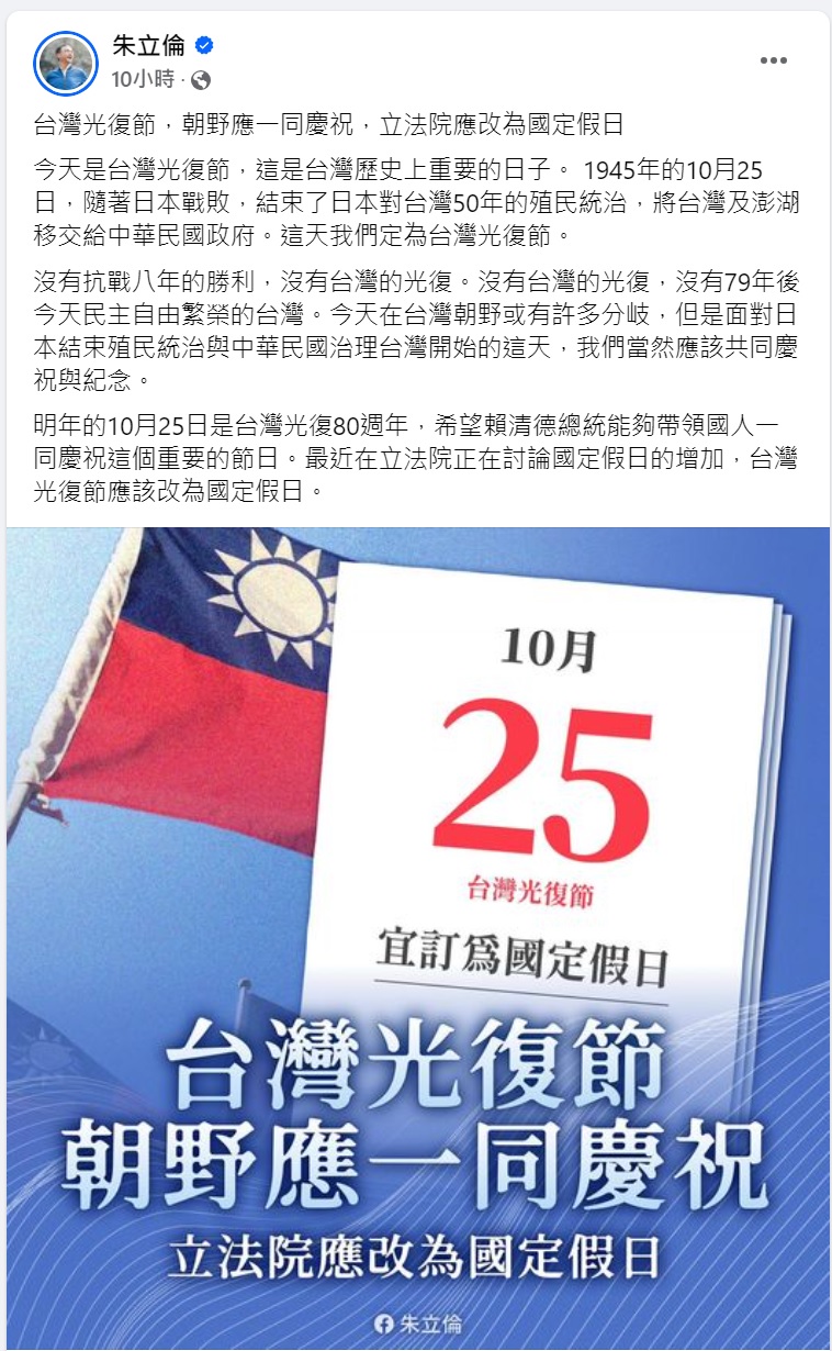分享 是誰配合中國政府要台灣紀念光復節 中國國民黨在1945年10月25日起竊據、殖民台灣,還把台灣再淪陷美化為台灣光復節。 今天國台辦怒斥民進黨政府淡化與否認台灣光復的歷史意義,重申中共一貫對台灣的歷史論述。 看看有誰附和中國政府?又是聯合報與國民黨主席朱立倫。連中國時報都沒這麼舔! 圖片來源:曾韋禎臉書 原文出自曾韋禎臉書,芋傳媒經授權轉載。 中國國民黨台灣台灣光復節國台辦朱立倫聯合報 分享 FacebookGoogle+電子信箱LINELinkedinTelegram