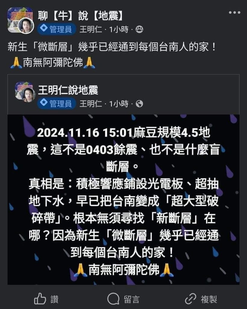 今日台南荒謬謠言:太陽能板會造成家家戶戶有地震斷層?