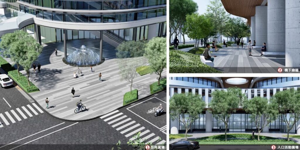而本案的 2 樓連結空橋,和北基地、南之南基地聯通,除了商場棟外,在商辦棟的二樓,沿著空橋也規劃了 4 個百坪以上的大型店面,比較可能由主題餐廳進駐,兼具商場與沿街店的特性。