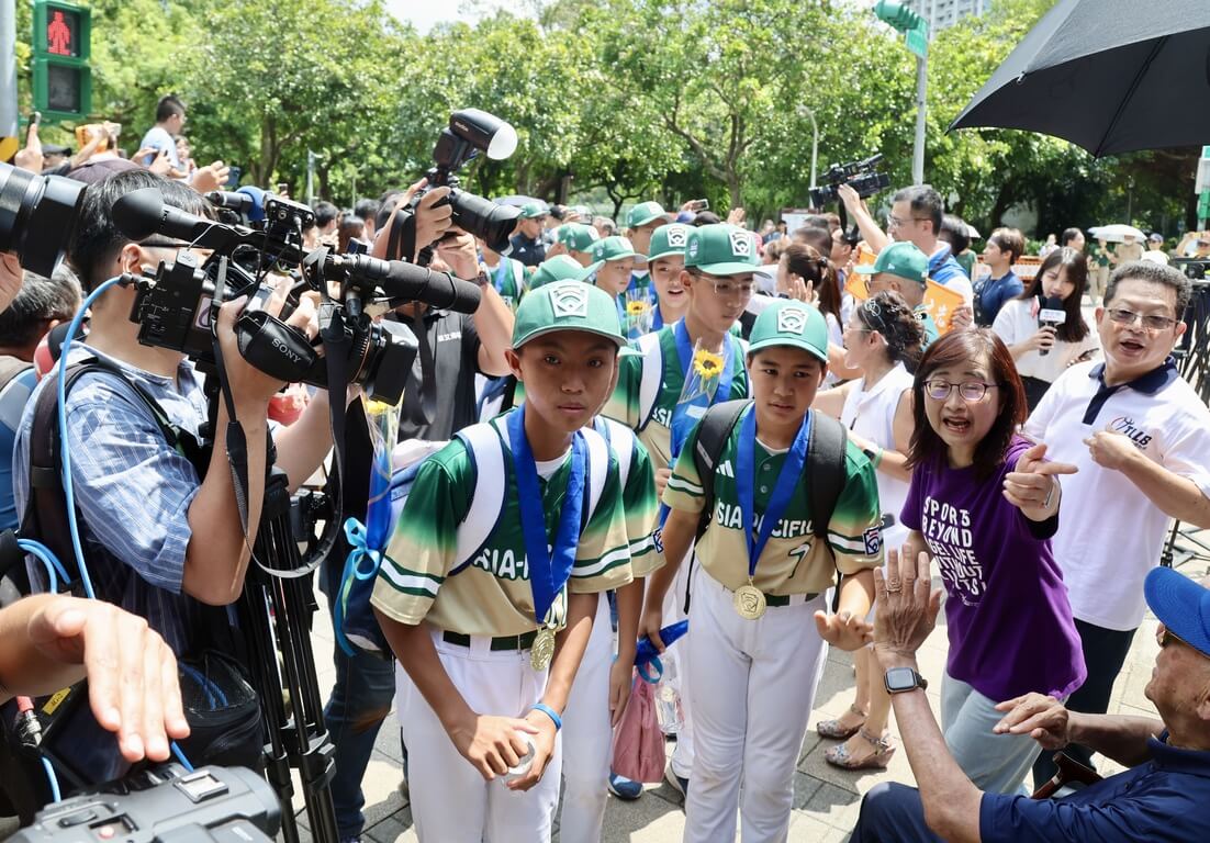 3支冠軍隊伍的隊長也分享比賽感想,東園國小少棒隊投手林晉擇說,雖然在別人主場比賽,但大家拿出應有的實力,並一一感謝民進黨立委吳沛憶等人的協助,才能拿到世界冠軍。