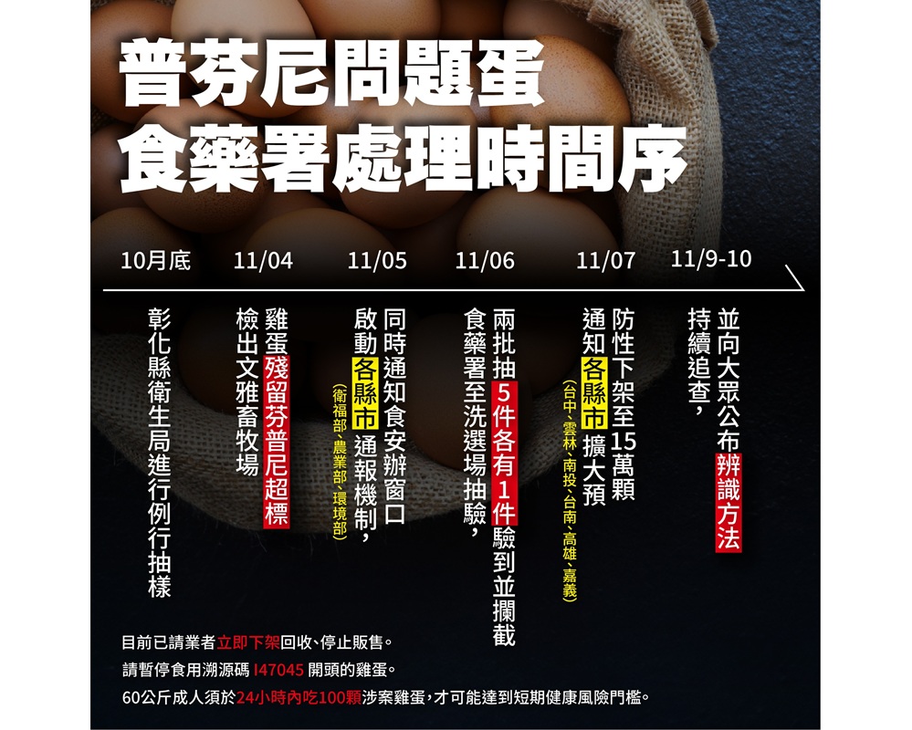 關於彰化 #芬普尼 殘留超標雞蛋,來看看中央處理時序。