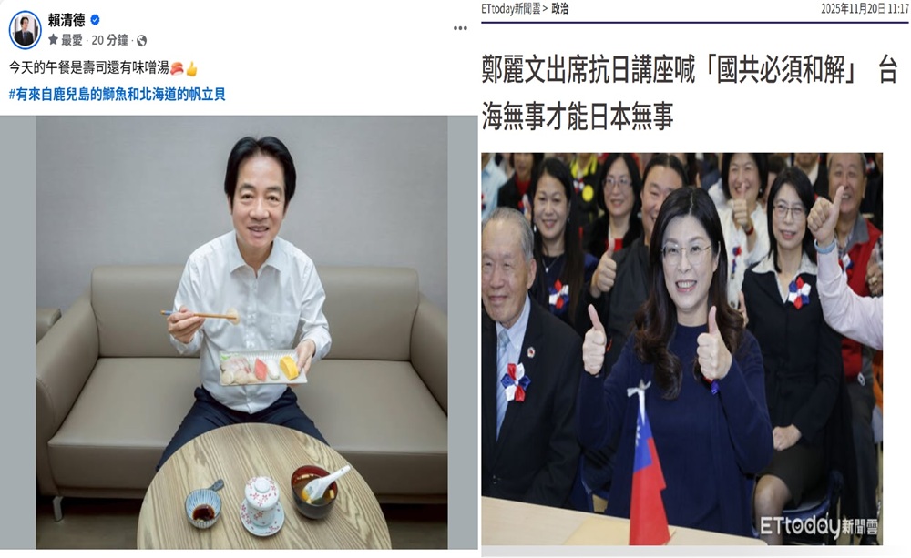 分享 台灣總統挺日本 中國黨主席搞抗日 台灣總統賴清德今天用行動支持遭中國惡意抵制的日本水產品。 中國國民黨主席鄭麗文徹底跪舔中國,出席仇日講座,要把台灣帶回國民黨綁架全台灣人仇日的那個專制年代。 圖片來源:曾韋禎臉書 原文出自曾韋禎臉書,芋傳媒經授權轉載。 中國國民黨仇日台灣總統日本水產品賴清德鄭麗文 分享 FacebookGoogle+電子信箱LINELinkedinTelegram