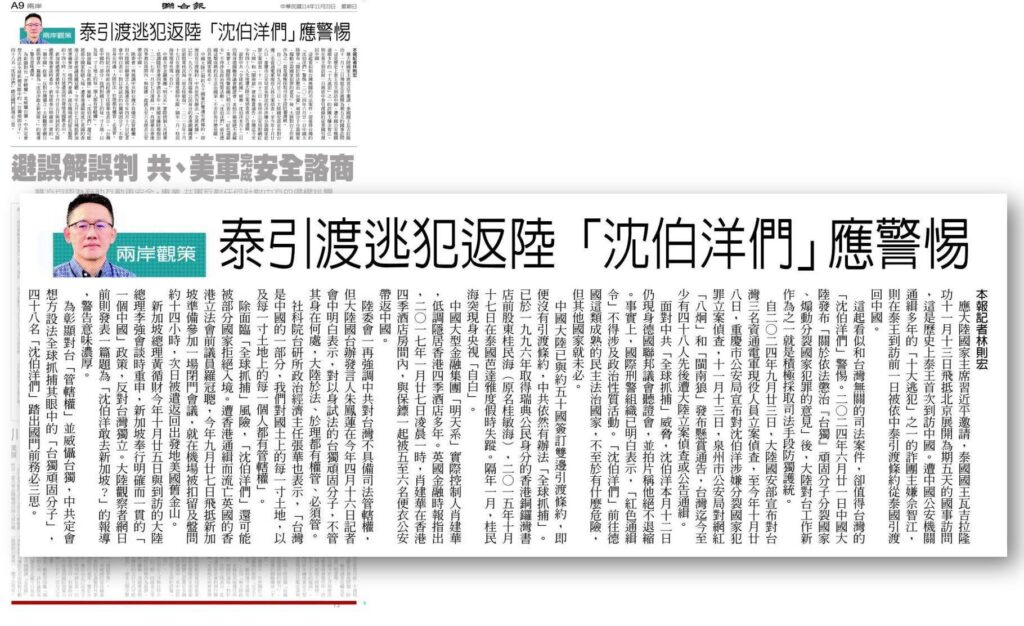 如果中國對每一個人有這樣的做法,像聯合報新聞,還有這種表面上看起來好像只是煽風點火、幸災樂禍,實際上是這個跨境數位獨裁運作系統的一環。政府國安單位應該要有強力的對策來應付未來台灣人民的這種處境。