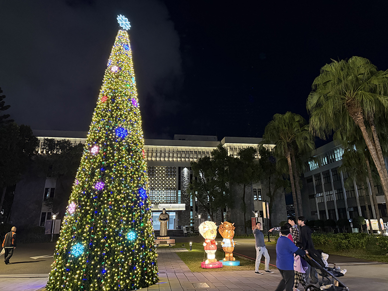 輔仁大學年度盛事「聖誕點燈」於今晚登場,今年的主題為「禧年同慶.輔大百年」。隨著主燈亮起,校園超過 800 公尺的燈飾同步綻放,吸引不少師生駐足觀賞及拍照。