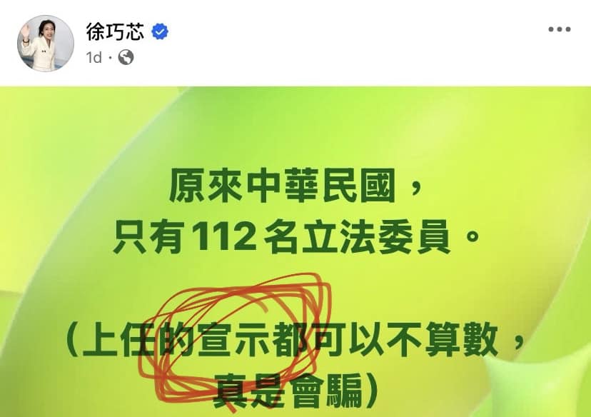分享 文:翁達瑞 【徐巧芯的文字能力】 王義川自稱台灣國的立法委員,徐巧芯不服,嘲笑王義川宣誓就職時不敢說台灣國。 貼文嘲笑王義川時,徐巧芯竟把「宣誓」寫成「宣示」(附圖一)。 原本我認為這只是單純的筆誤,沒什麼了不起。我自己也犯過類似的筆誤。 問題是,徐巧芯不放過王義川,在社群平台繼續發文嘲諷,還是將「宣誓」寫成「宣示」。(附圖二) 顯然徐巧芯「誓、示」不分,而非單純的筆誤。 徐巧芯是我們的國會議員,文字能力不過如此,的確令我驚訝。 原文出自翁達瑞臉書,芋傳媒經授權轉載。 國會議員宣示宣誓徐巧芯文字能力王義川 分享 FacebookGoogle+電子信箱LINELinkedinTelegram