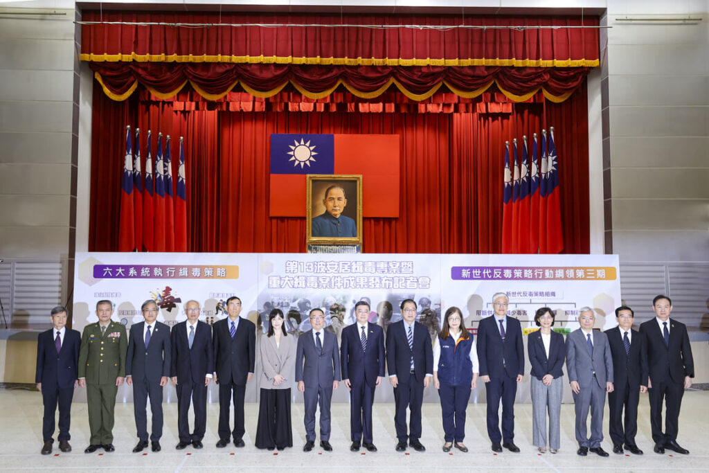 全國第 13 波安居緝毒專案今天舉行成果記者會,調查局破獲「喵喵」毒品先驅原料透過淘寶平台,偽以「矽油」名義進口案。行政院長卓榮泰說,網購平台不自律暗藏毒品應加強管制。