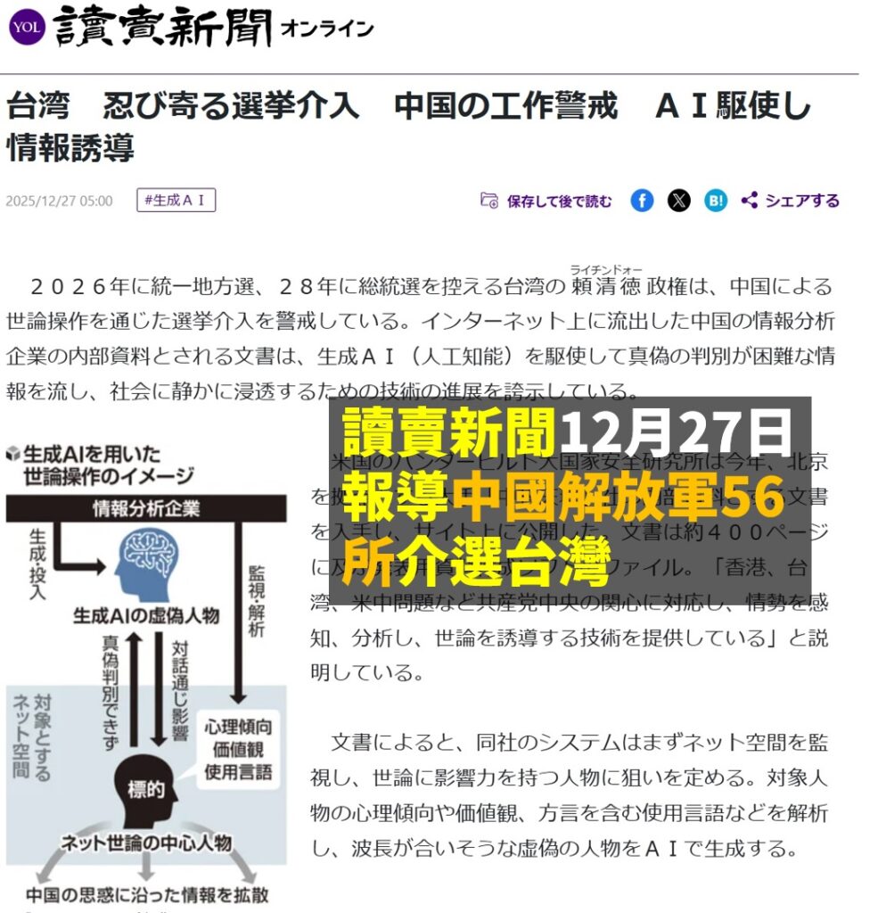 分享 兩小報今天為抹黑民進黨 刊了讀賣新聞的中國介選新聞 讀賣新聞27日報導中國解放軍56所催生韓流、介選台灣。聯合報、中國時報身為中國介選的工具,28日對此隻字未提。 但因韓國瑜、鄭麗文等中國介選的受益者惱羞成怒、對號入座、遷怒民進黨,聯合報、中國時報29日都報導了! 圖片來源:曾韋禎臉書 原文出自曾韋禎臉書,芋傳媒經授權轉載。 中國介選中國時報兩小報抹黑民進黨聯合報讀賣新聞鄭麗文韓國瑜 分享 FacebookGoogle+電子信箱LINELinkedinTelegram