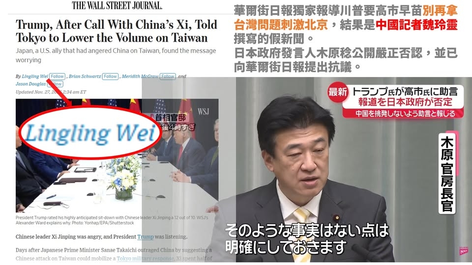 分享 又是華爾街日報魏玲靈杜撰的假新聞 WSJ中國首席記者魏玲靈上次幫中國造假新聞,稱川普要高市早苗別再拿台灣問題刺激北京。 這次是為了幫習近平安插構陷政敵的罪名,造假新聞稱張又俠對美洩核武情資。再次重申,若只是華裔就要聽從中國指揮,那中國籍人士在台灣參政,又要如何抗拒中國政府的命令? 圖片來源:曾韋禎臉書 原文出自曾韋禎臉書,芋傳媒經授權轉載。 假新聞張又俠習近平華爾街日報魏玲靈 分享 FacebookGoogle+電子信箱LINELinkedinTelegram