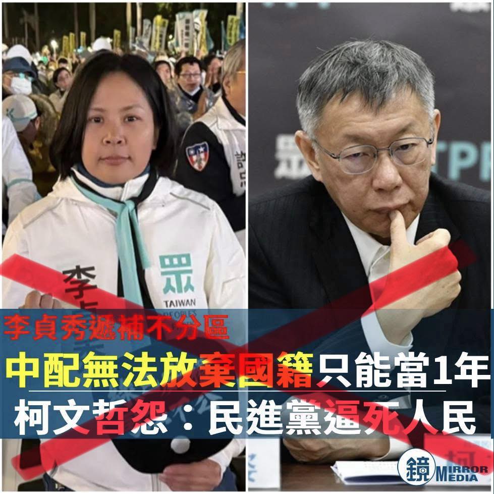 如果李貞秀只能當一年立委算是政黨逼死人民,罪魁禍首是國民黨,而非民進黨。國籍法的修法時間很容易查證,柯文哲沒講實話,目的在嫁禍民進黨。