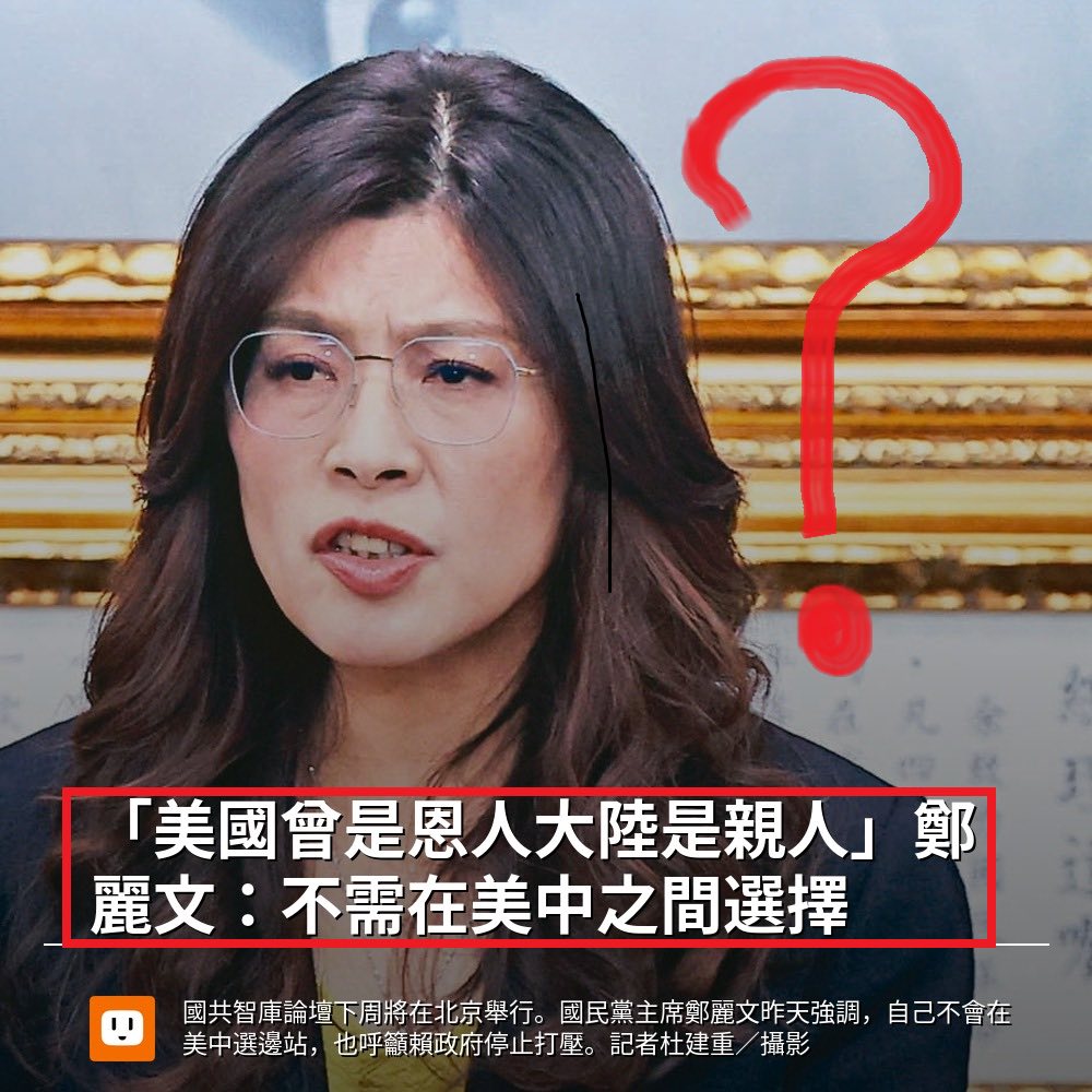 鄭麗文改口後馬上被打臉,主要有兩點:一、如果中國是親人,為何長期武力威脅台灣?二、美中對抗的形勢險峻,台灣真的可以兩邊選嗎?