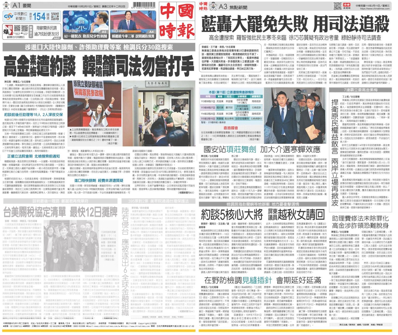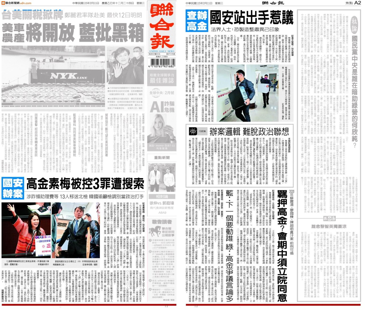 分享 高金素梅就是中國的核心利益 高金素梅身涉多案遭30路搜索、全案17名被告,另涉3名縣議員。 結果直屬於中國的聯合報、中國時報,全口徑一致說這是政治辦案、司法追殺,顯然高金素梅就是中國的核心利益。 圖片來源:曾韋禎臉書 原文出自曾韋禎臉書,芋傳媒經授權轉載。 中國時報核心利益聯合報高金素梅 分享 FacebookGoogle+電子信箱LINELinkedinTelegram