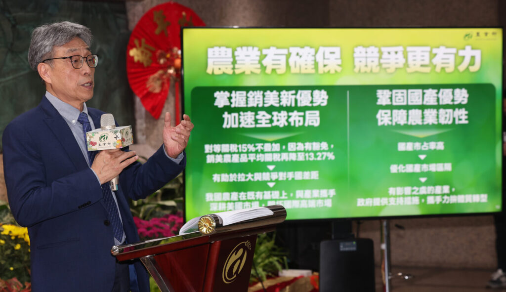 陳駿季說,台灣這次也爭取到多項輸美農產品關稅取 15 % 且不疊加,不但與日本、韓國、歐盟、瑞士齊平,也比中國、印度、印尼、越南、泰國低,可維持競爭優勢。