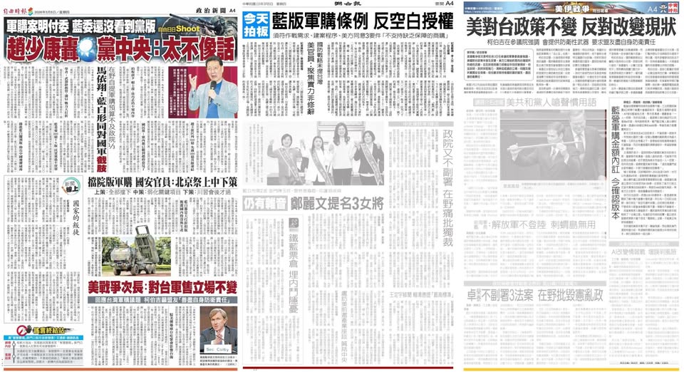 分享 聯合報努力幫中國執行擋軍購 國民黨內部有怕遭美國制裁、想敷衍美國的,對鄭麗文把軍購壓到3500億元很不滿。自由時報完整呈現。 聯合報持續淡化,還把國民黨的惡搞美化成反對空白授權。 中國時報至少還坦言藍營鬧內鬨。 聯合報就是在執行中國的中策,弱化關鍵軍購項目。 圖片來源:曾韋禎臉書 原文出自曾韋禎臉書,芋傳媒經授權轉載。 中國時報國民黨敷衍美國聯合報自由時報軍購鄭麗文 分享 FacebookGoogle+電子信箱LINELinkedinTelegram